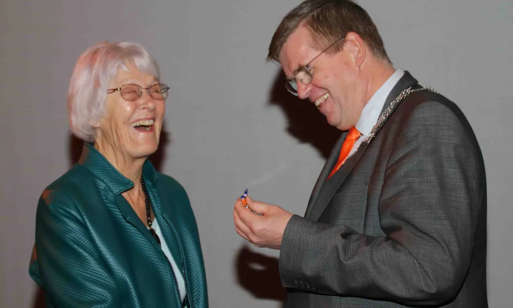 Het blijft leuk, nietsvermoedende Ermeloers die met allerlei smoesjes naar het gemeentehuis worden gelokt om Koninklijk te worden onderscheiden. Zo ook vandaag, woensdag 26 april.
