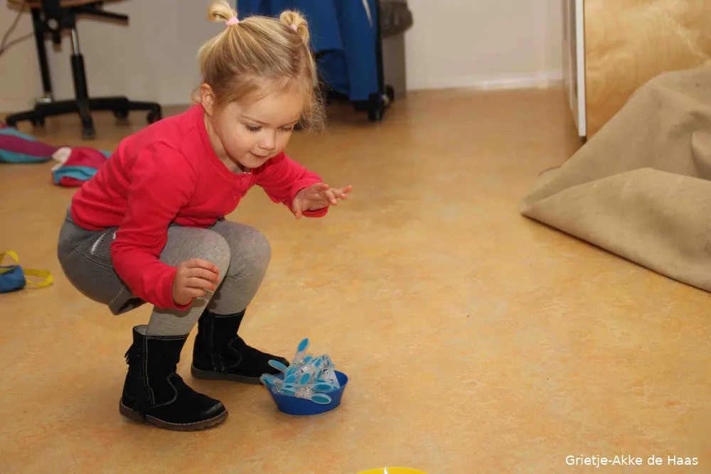 Vanmorgen, woensdag 29 november was de aftrap op peuterspeelzaal Bambino aan de Amanietlaan in wijk West. Onder leiding van buurtsportcoach Thom Strijland speelden de peuters verschillende spellen met een scala aan gekleurde knijpers, met als doel de fijne motoriek te oefenen, kleuren herkennen en lekker bewegen, al dan niet in competitieverband.