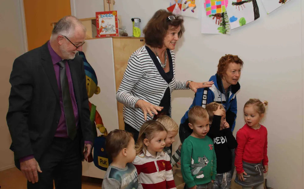 De peuterjuffen deden al net zo fanatiek mee. "Hahaha", lachte Ina Smeding voluit, "we willen wel winnen natuurlijk." Waarop ze het grut aanspoorde zoveel mogelijk knijpers van een bepaalde kleur te bevestigen aan een voorwerp in het speellokaal van ongeveer dezelfde tint. Natuurlijk speelde ook wethouder sport, Laurens Klappe, vrolijk mee met de spelletjes.