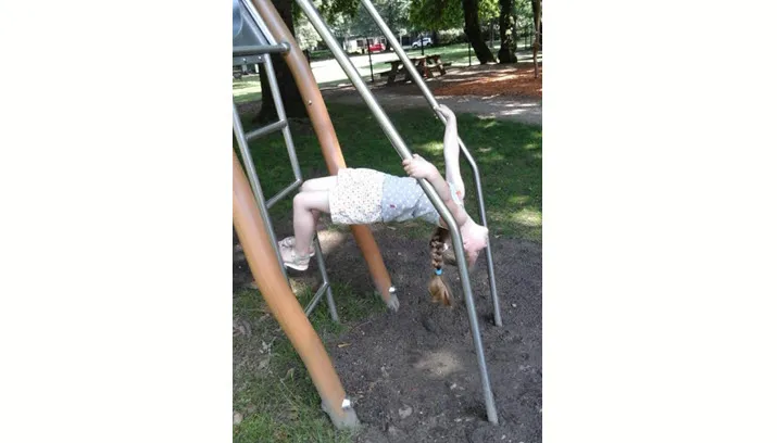 Groot was de verbazing van Marian en de buurtbewoners toen dinsdag 29 mei de gewraakte beugels waren geplaatst. "Mijn kleindochter Luana van 6 jaar komt niet omhoog, net als veel andere jongere kinderen uit de buurt dat niet lukt. Met een beetje pech vallen kinderen zo achterover. En nog steeds valt de overstap niet te maken als kinderen van de glijbaan af willen glijden. Bovendien gaat het mij niet om de leuningen, maar om de trap van de glijbaan die veel te steil is. Wat dat betreft ben ik het nu zat."