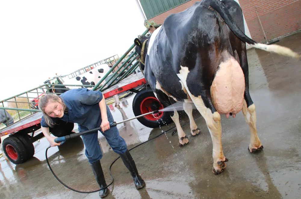 Voor aanvang zorgden de veehouders er natuurlijk voor dat hun dames er op hun mooist bijliepen. Dat viel niet altijd mee zo constateerde een boer. Zijn dame had toch echt weer een poetsbeurt nodig. "Hmmm", zei hij, "net was ze nog schoon, en na een halve kilometer rijden zit ze weer onder de poep."
