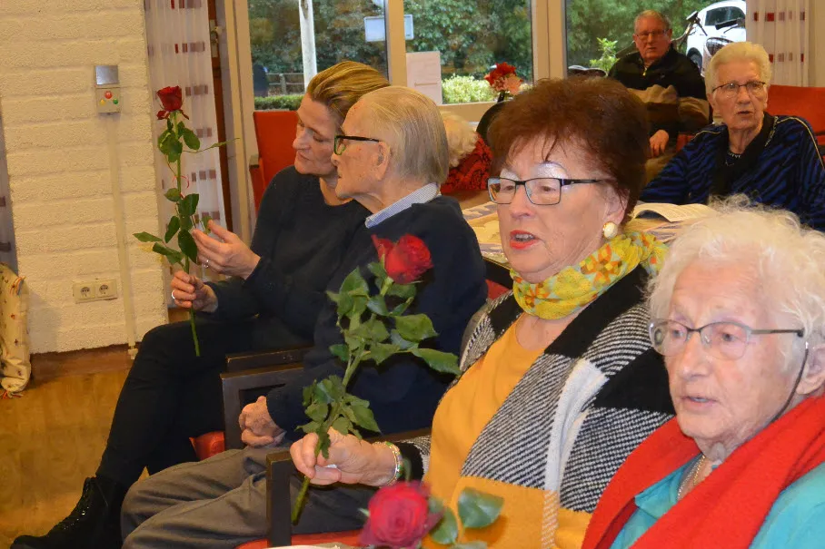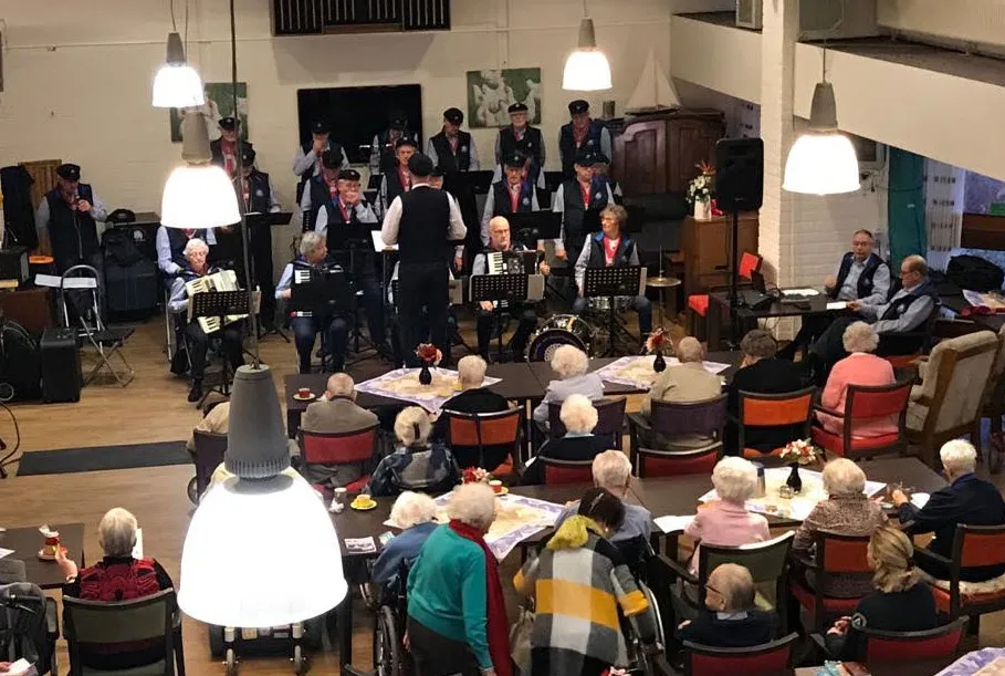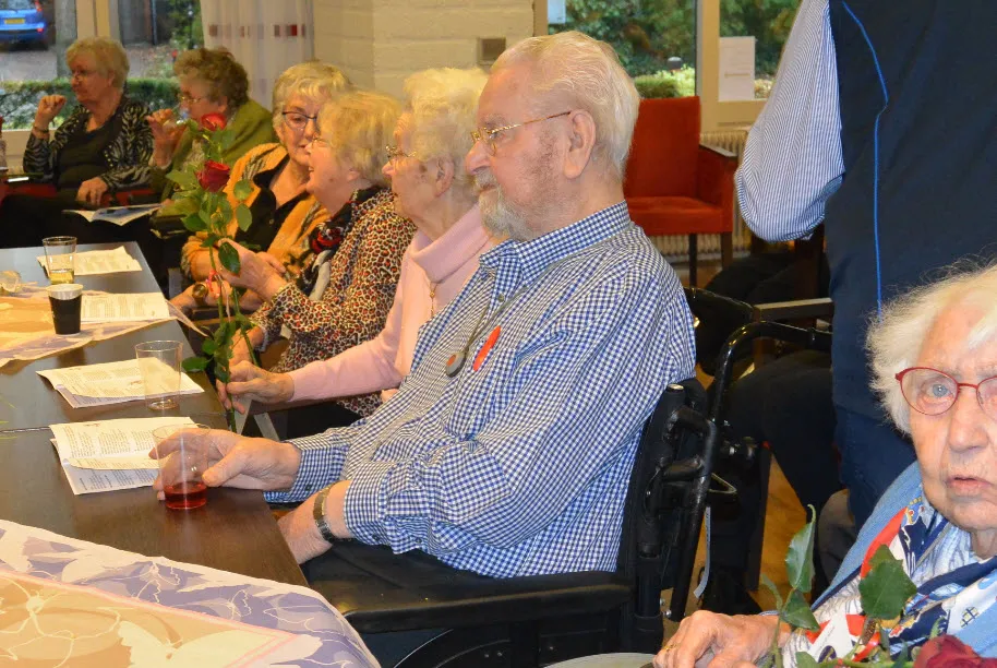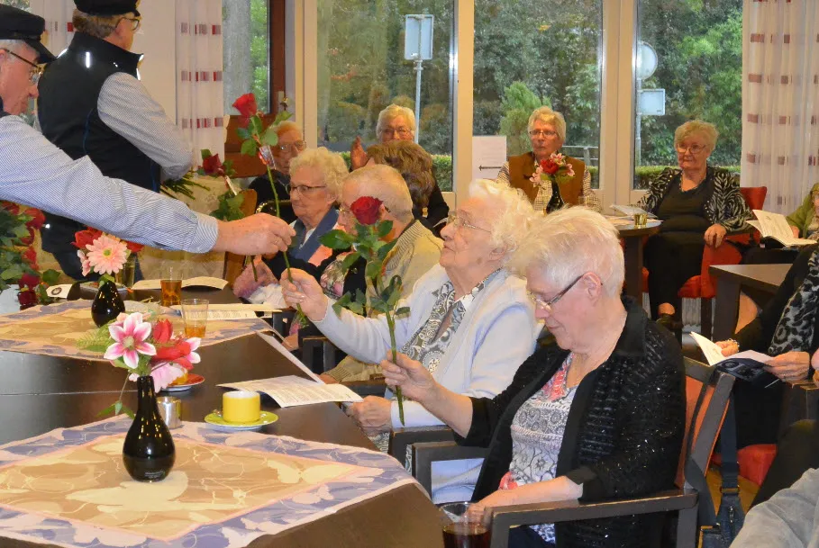 Ook muzikaal kwamen de bewoners nog aan hun trekken. Zaterdag 18 januari was het Shantykoor Ermeluiden te gast in de Dillenburg. Samen met de in grote getale aanwezige gasten en hun familieleden werd het een groot feest en samenzang. De mannen van het Shantykoor deelden aan alle vrouwen in de zaal, onder het zingen van het lied24 rozen van Toon Hermans, een roos aan hen uit. De middag kon voor deze dames niet meer stuk.