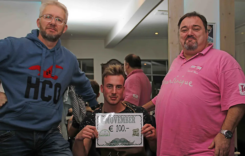 De actie van Robert en Ron leverde 75 euro op voor Movember. Barbier Mad Max maakte er vervolgens een mooi rond bedrag van door ook 25 euro te doneren.
