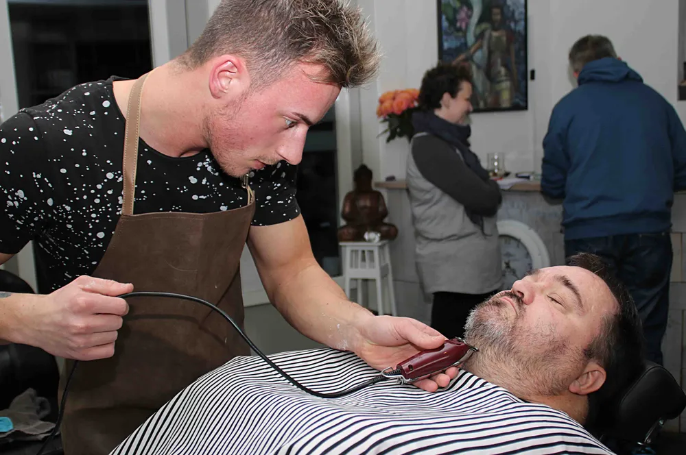 Een maand lang hadden Robert Ketelaar en Ron Kamp van Dagbesteding Smart in Ermelo hun baard en snor laten groeien in het kader van Movember. Vanmiddag, donderdag 1 december, lieten beide mannen de weelderige haardos rond hun kin, hals en onder de neus tot in de puntjes verzorgen door barbier Mad Max Wijnen van Haarsmederij aan de Weegakker 45.