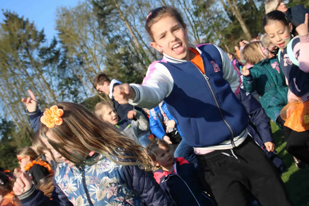 Deze keer geen podium voor DansFabriek S.I.L.K, want de muziekinstallatie bij het hoofdveld haperde, zo werd er gezegd. In allerijl was het openingsnummer verhuisd naar één van de voetbalvelden aan de andere kant van de kantine. Daar stond een DJ in de DVS-keet de grote kudde in oranje getooide kinderen van alle basisscholen op te wachten. Waarop Renate en haar dansers vol vuur op het Koningsspelenlied de Pasapas van Kinderen voor Kinderen voordanste. Veel kids en ook ouders en leerkrachten kregen binnen no-time de smaak van het dansen te pakken.