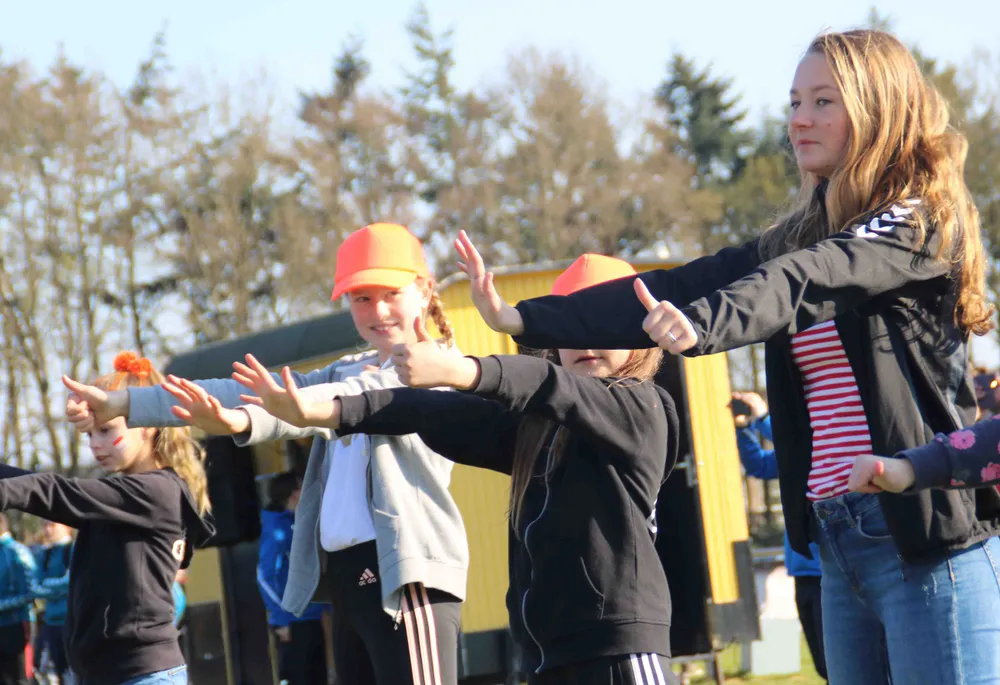 Hoewel wat aan de frisse kant startte de Koningsspelen vanochtend, vrijdag 12 april, zonovergoten. DansFabriek S.I.L.K had de eer de Koningsspelen te open op het terrein van voetbalvereniging DVS'33. Eigenaar Renate Goossensen had een groep van 14 dansers meegenomen.