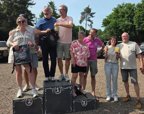 De finish was opnieuw bij het Veluws Ros met een gezellige borrel en lekkere hapjes. Ook werden er prijzen uitgereikt aan de winnaars van de puzzelronde én – met een knipoog – een poedelprijs voor de auto die helaas onderweg moest worden afgesleept. Bovendien deelde de organisatie met veel trots mee dat Raaf Autotourtocht maar liefst €2600,- heeft opgebracht.