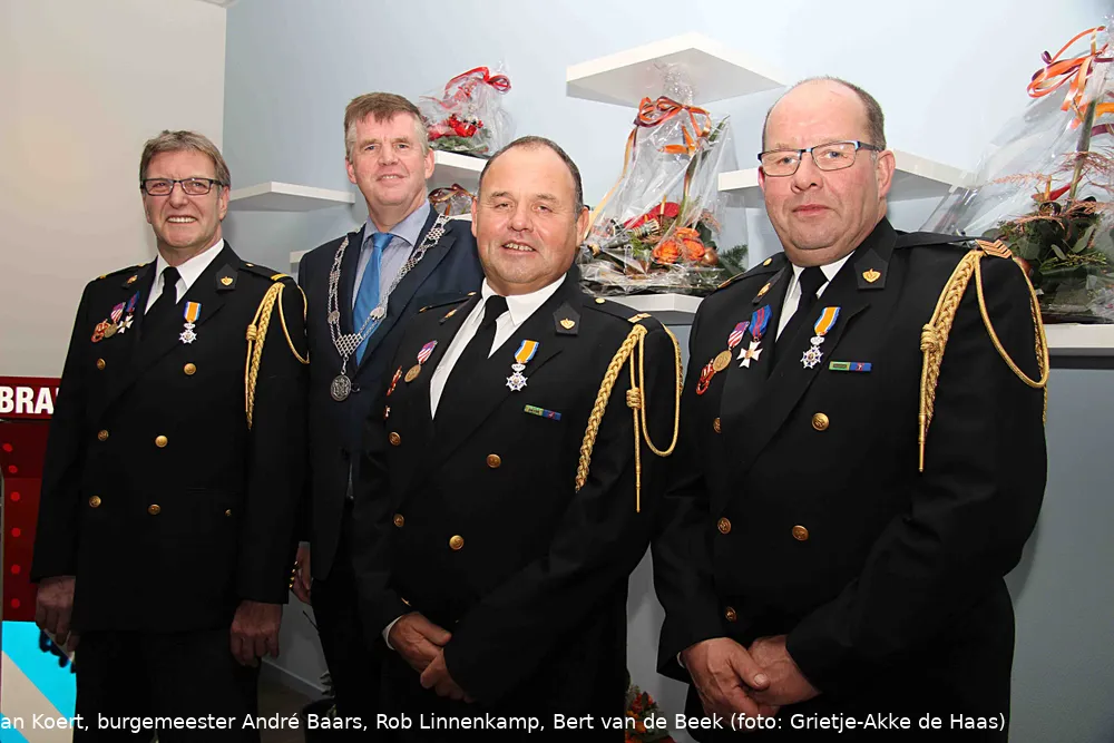 Burgemeester André Baars reikte de onderscheiding uitaan Rob Linnenkamp, Bert van de Beek en Richard van Koert. De mannen kregen de onderscheiding vanwege hun lange vrijwillige staat van dienst bij de Ermelose Brandweer, alle drie bijna of ruim dertig jaar. Het betekende tevens hun officiële afscheid van het 'brandweervak' omdat zij de 'pensioengerechtigde' leeftijd hebben bereikt.
