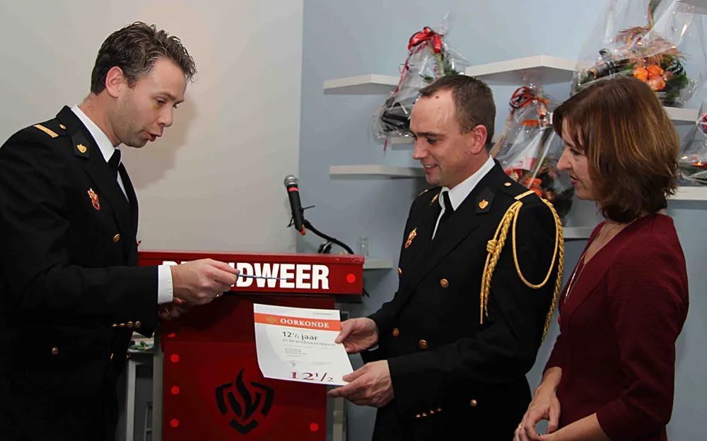 Marco Ringelberg kreeg een oorkonde en bloemen voor 12,5 jaar inzet als vrijwilliger.De Ermelose Brandweer nam daarnaast afscheid van Gerbert Hop en Wim Jansen omdat zij door verschuiving van hun werk helaas niet meer inzetbaar kunnen zijn bij de Brandweer Ermelo. Ook nam de ademlichtploeg afscheid van Jan van Drie.