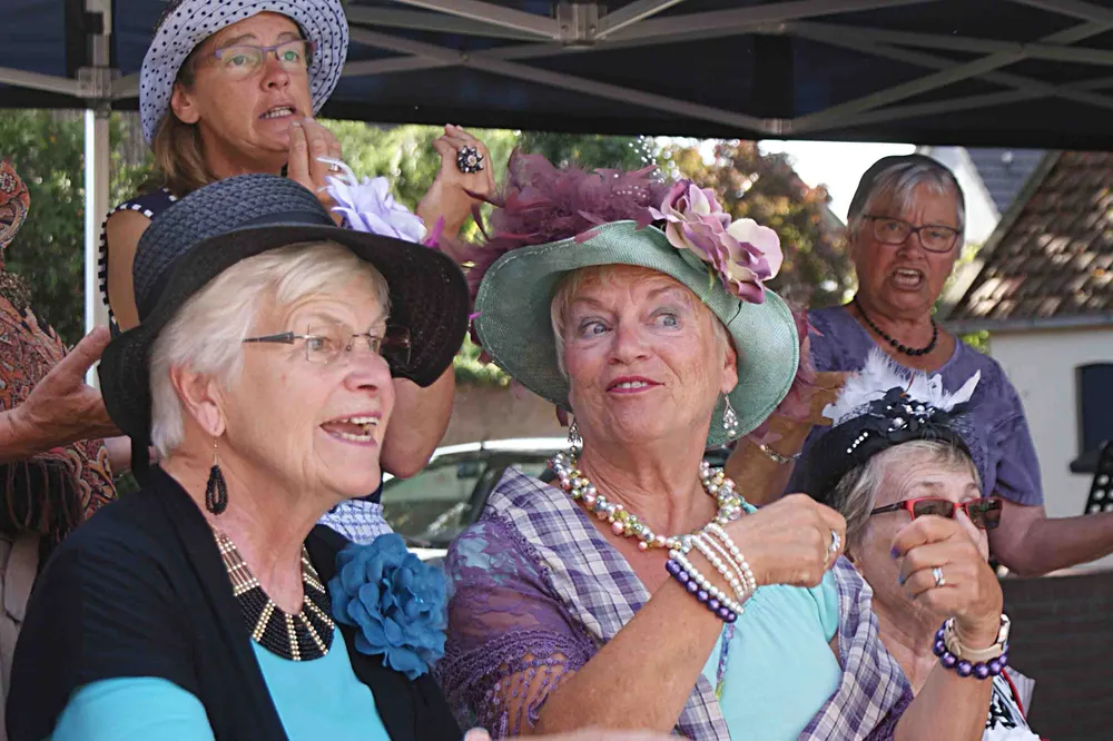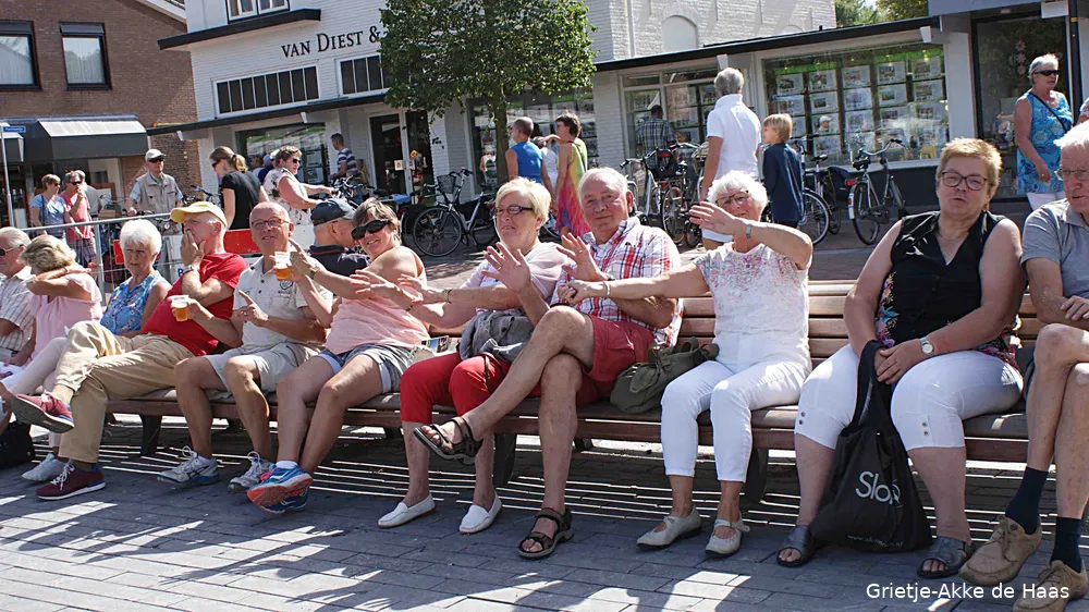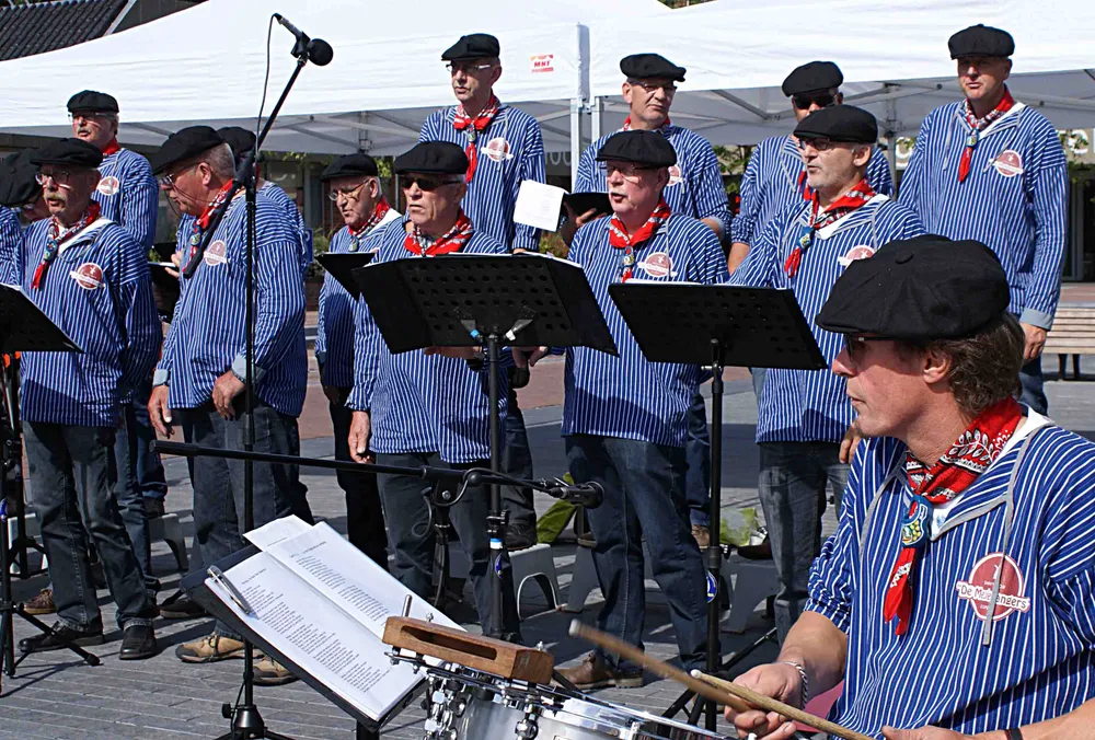 De terrassen in Ermelo zitten vol vandaag, zaterdag 10 september. Vanwege de zomerse temperaturen, maar vooral om het 12,5-jarige jubileum te vieren van Shanty- en Gezelligheidskoor Ermeluiden.
