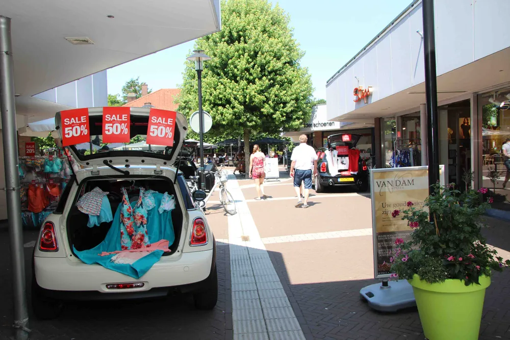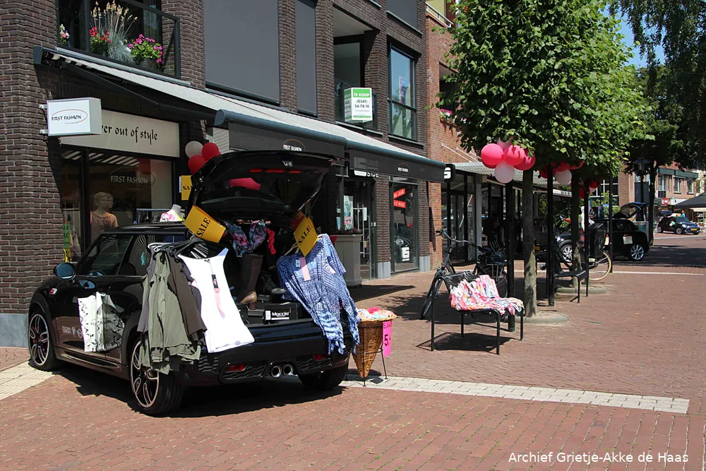 Halverwege de Stationsstraat ontwaarde de bezoeker de eerste Mini bij Vita Liberamet een geopende kofferbak vol leuke en scherp geprijsde koopjes. Wat de start was van een lint van Mini's voor de deuren van veel ondernemers die hun waar op een ludieke wijze aan de man wilde brengen.