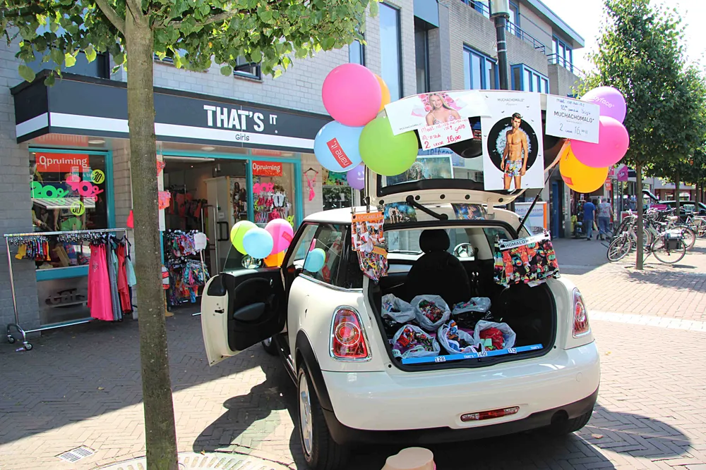 De manier waarop de waar was geëtaleerdtoverde een grijns op de gezichten van menig consument, en maakte ze bovendien erg nieuwsgierig. Zo viel bij veel de mond open bij de prachtig geëtaleerde Mini van That's It Kinderkleding.