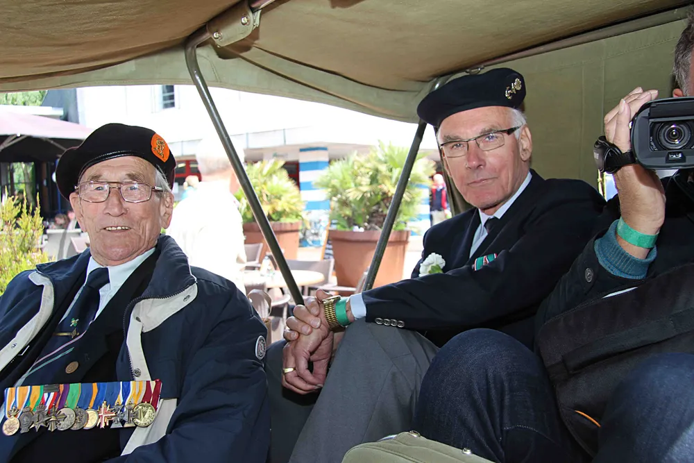 Vanuit Putten, via Sonneheerdt waren de voertuigen de verschillende rotondes aan de Putterweg komen omzeilen, waarna ze in het centrum gastvrij werden onthaald door veel publiek dat reikhalzend naar de komst had uitgezien. De veteranen genoten volop met een praatje hier, een praatje daar, de traktaties, burgemeester André Baars en wethouder Jan van den Bosch die hen eer bewezen en belangstellenden van jong tot oud die de voertuigen bewonderden en er er in plaats mochten nemen. Daarnaast werden de rij onderscheidingen bewonderd waarmee een aantal veteranen pronkten.