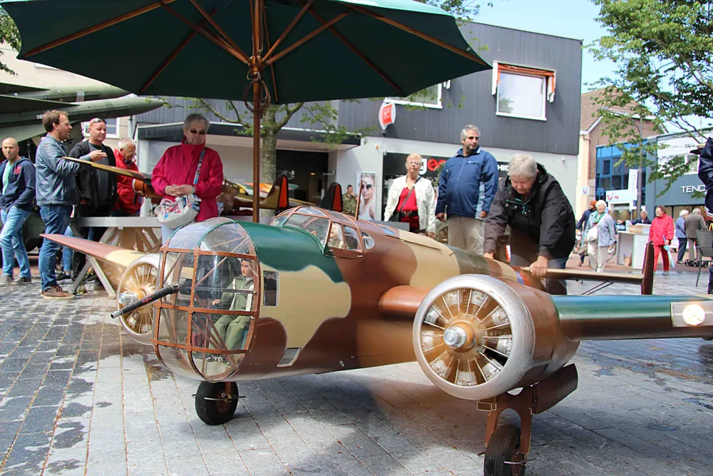 Heel veel belangstelling trok ook het Pauwenplein dat was omgedoopt tot een veteranenplein. Van jong tot oud vergaapte zich aan De HAWK raketopstelling van het Museum de Peel, de schaalmodellen vliegtuigen die tijdens WO II zijn ingezet, en een Fokker T-V die zo snel de motoren liet draaien dat een medewerkster die het vliegtuig op de grond moest houden, nog net niet de lucht invloog.