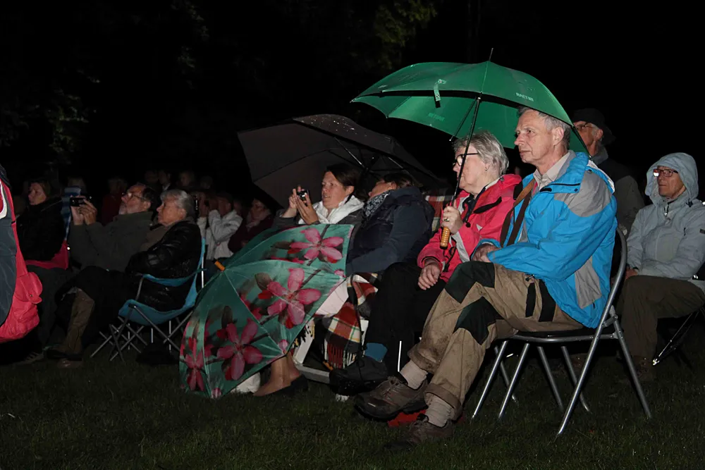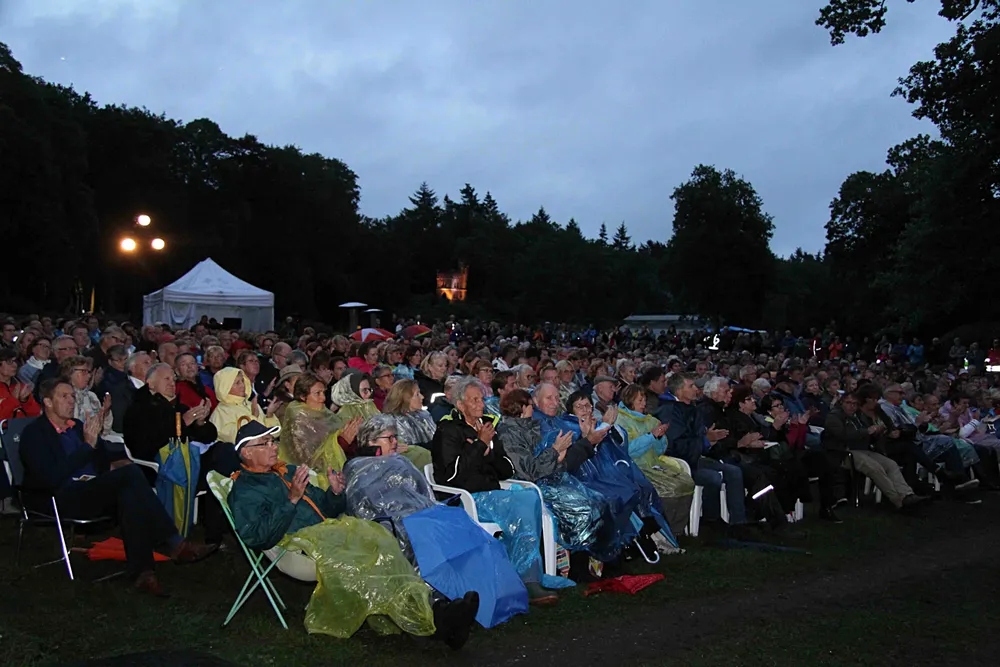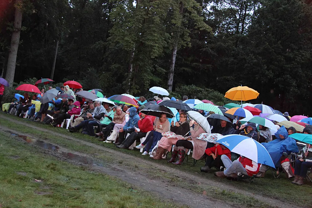 Vanmiddag, vrijdag 4 september, vermoedden bestuursleden Bertus Bakker en Bart Willemsen het al. Weer of geen weer, de echte liefhebbers van Groevenbeek Klassiek komen wel opdagen vanavond. Ze kregen gelijk, zo'n 1000 man aan publiek genoten van het aansprekende openluchtconcert in de tuin van Landgoed Oud Groevenbeek.