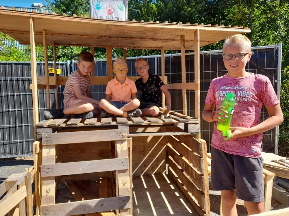 Niet alleen de kinderen waren fanatiek, ook ouders kwamen met regelmaat langs om even te helpen. Voor de verkoeling werd er elke dag ijs gegeten en werd er gebruik gemaakt van de waterslang van Interactie. Ook heeft de EHBO zijn tijd goed besteed. Gelukkig is het gebleven bij wat schaafwondjes en een enkele spijker in de voet, maar iedereen is goed geholpen waar nodig. Het feest is mooi afgesloten met het inrichten van de hut. Daarna was het tijd om afscheid te nemen.