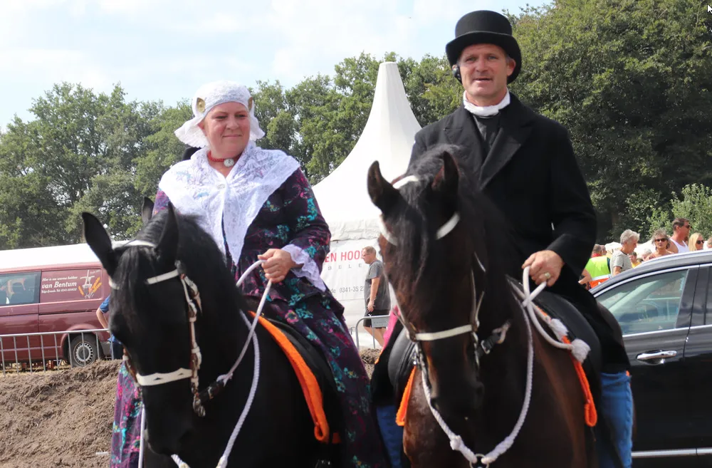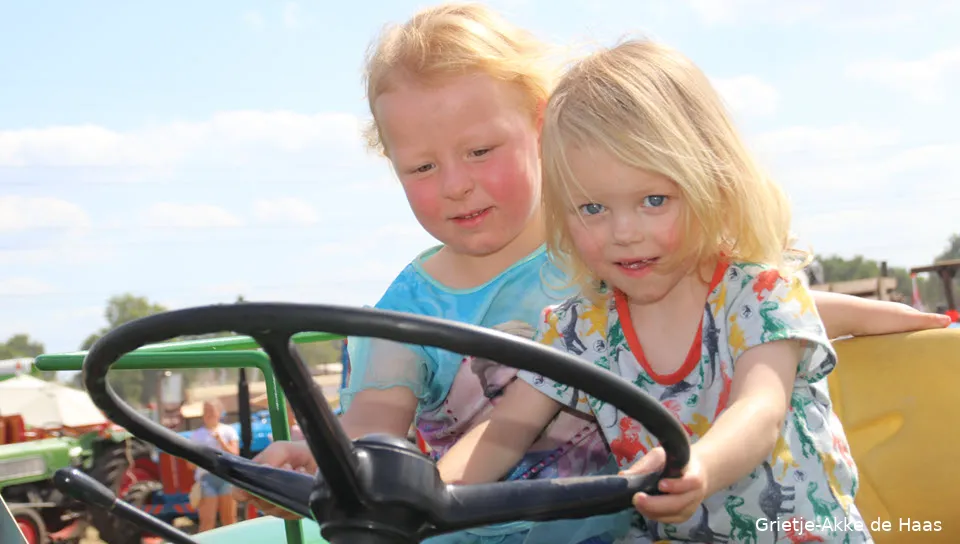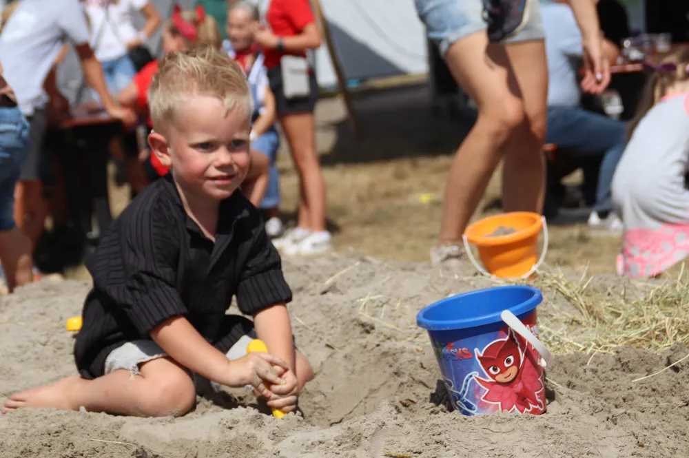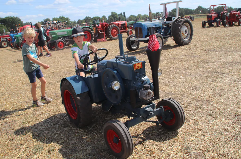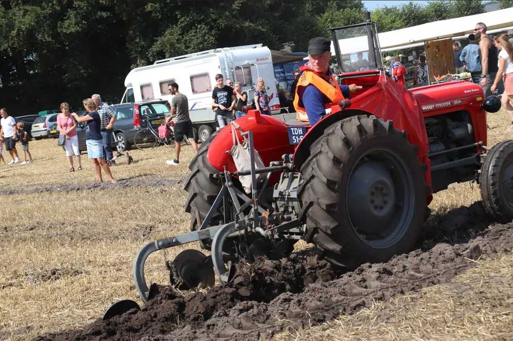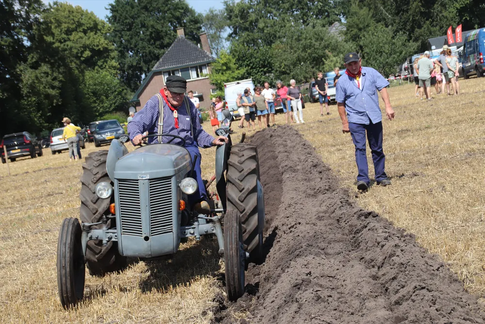 Het was dan bij vlagen ook erg druk bij het Oogstfeest waar van jong tot oud zich opperbest vermaakte. Door de aanhoudende droogte was het flink stoffig op het terrein. Waar vooral de in sandalen gestoken blote voeten zwart van werden. Zo nu en dan zorgden bepaalde activiteiten voor flinke stofwolken, zoals de Friese paardenshow of het ploegen met de tractor. Er was echter vrijwel niemand die daarom maalde, want het publiek had het erg naar de zin.