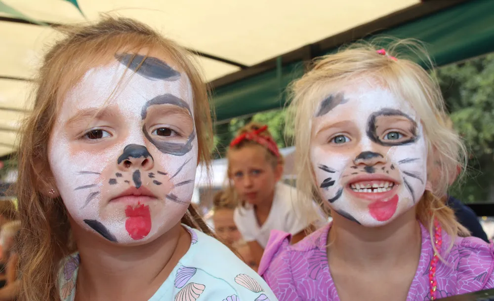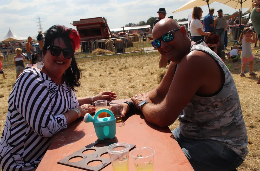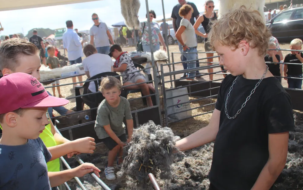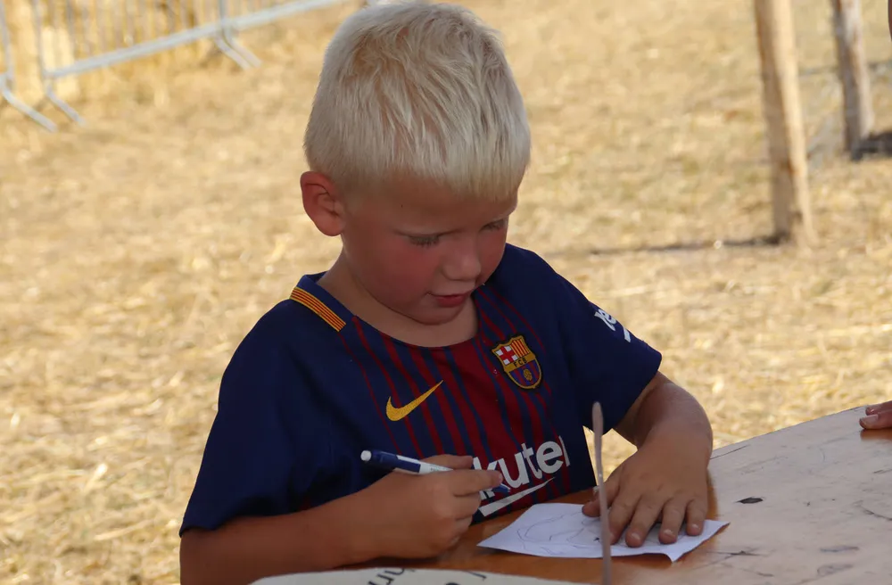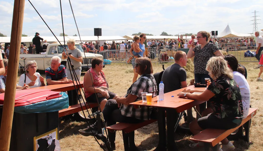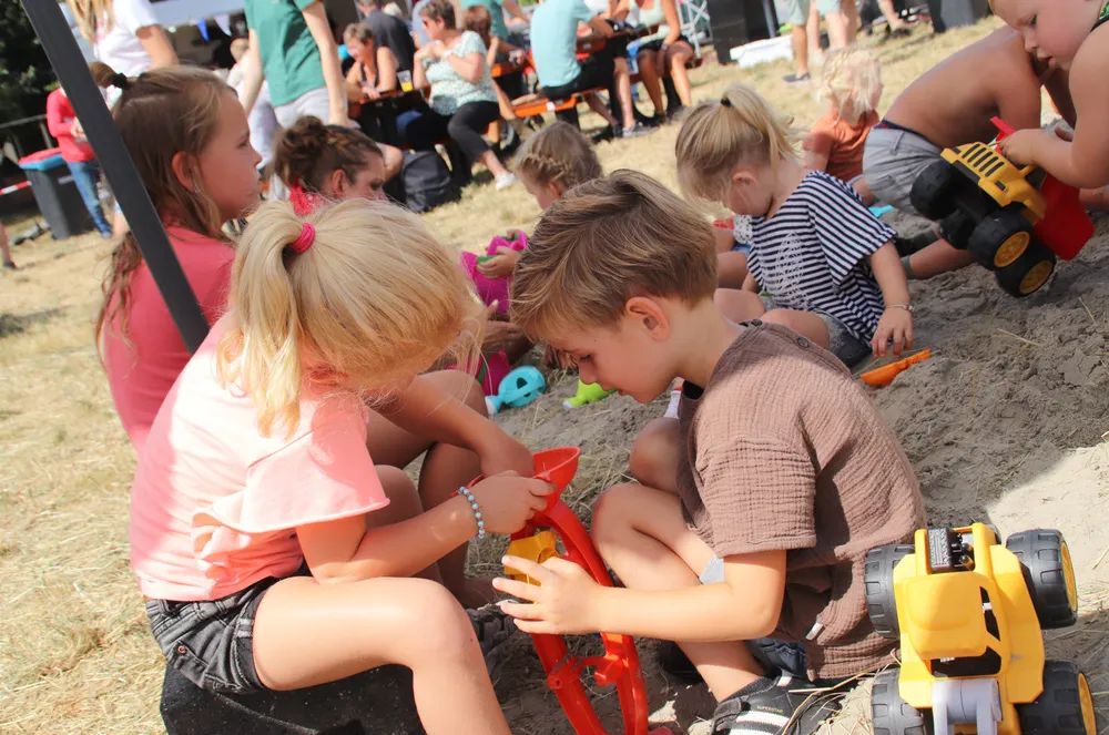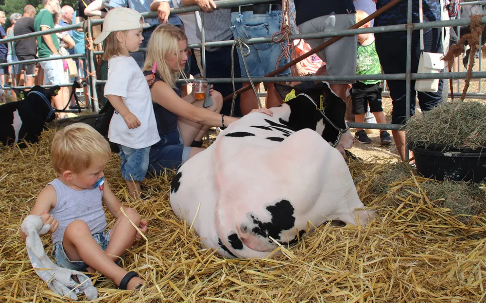 Het was dan bij vlagen ook erg druk bij het Oogstfeest waar van jong tot oud zich opperbest vermaakte. Door de aanhoudende droogte was het flink stoffig op het terrein. Waar vooral de in sandalen gestoken blote voeten zwart van werden. Zo nu en dan zorgden bepaalde activiteiten voor flinke stofwolken, zoals de Friese paardenshow of het ploegen met de tractor. Er was echter vrijwel niemand die daarom maalde, want het publiek had het erg naar de zin.