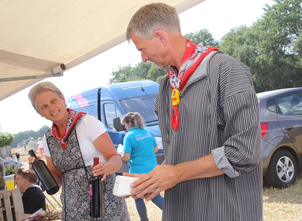 Opvallend was de relaxte sfeer bij de diverse kraampjes. Bij de kraam waar honing werd verkocht en manden gevlochten bijvoorbeeld. Zowel de kraamhouders als hun klanten, zaten op hun stoelen gezellig met elkaar te kletsen. "We genieten ervan", riepen ze eensgezind.