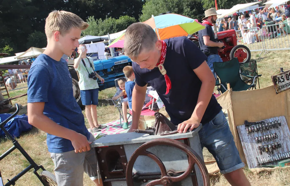 Natuurlijk is het fietsverkeer de afgelopen jaren flink toegenomen. Maar vandaag, zaterdag 20 augustus, waren er wel bijzonder veel fietsers op de Telgterweg tot de rotonde om rechtsaf te slaan naar de Oude Nijkerkerweg. Ofwel, het was vanuit het centrum bijna file fietsen om een bezoekje te kunnen brengen aan het Oogstfeest Ermelo dat plaatsvond op het erf van Eibert Kuiper.