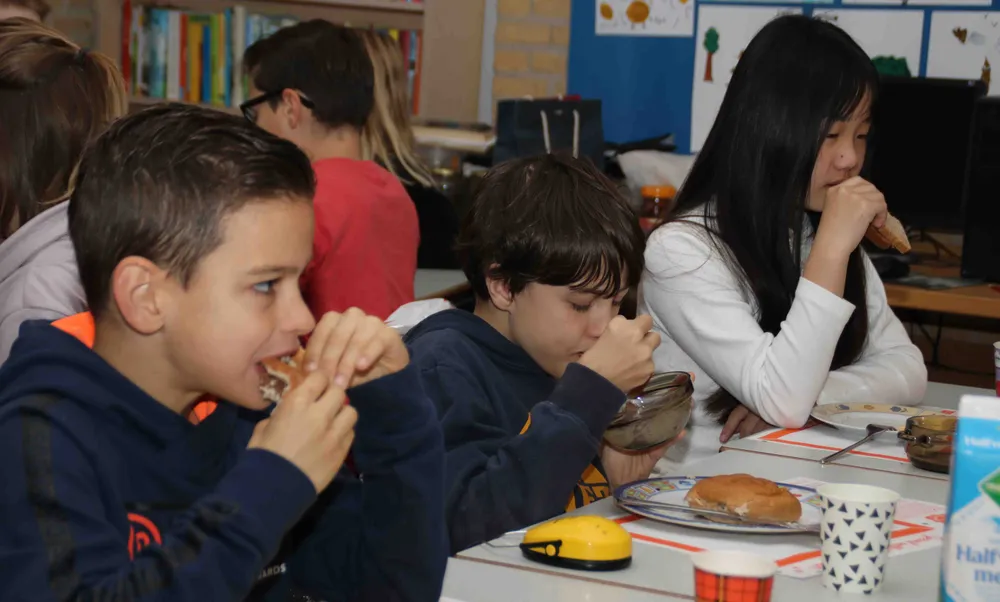 Groep 3 tot en met 8 van de Julianaschool trapte vanmorgen, dinsdag 7 november, het Nationale Schoolontbijt af in Ermelo. De komende dagen vindt het evenement dat ontbijt als de gezonde start van de dag promoot, ook plaats op de Goede Herderschool, de Speulderbrink, de Margrietschool, Ireneschool, Arendshorst en de Augustinusschool.