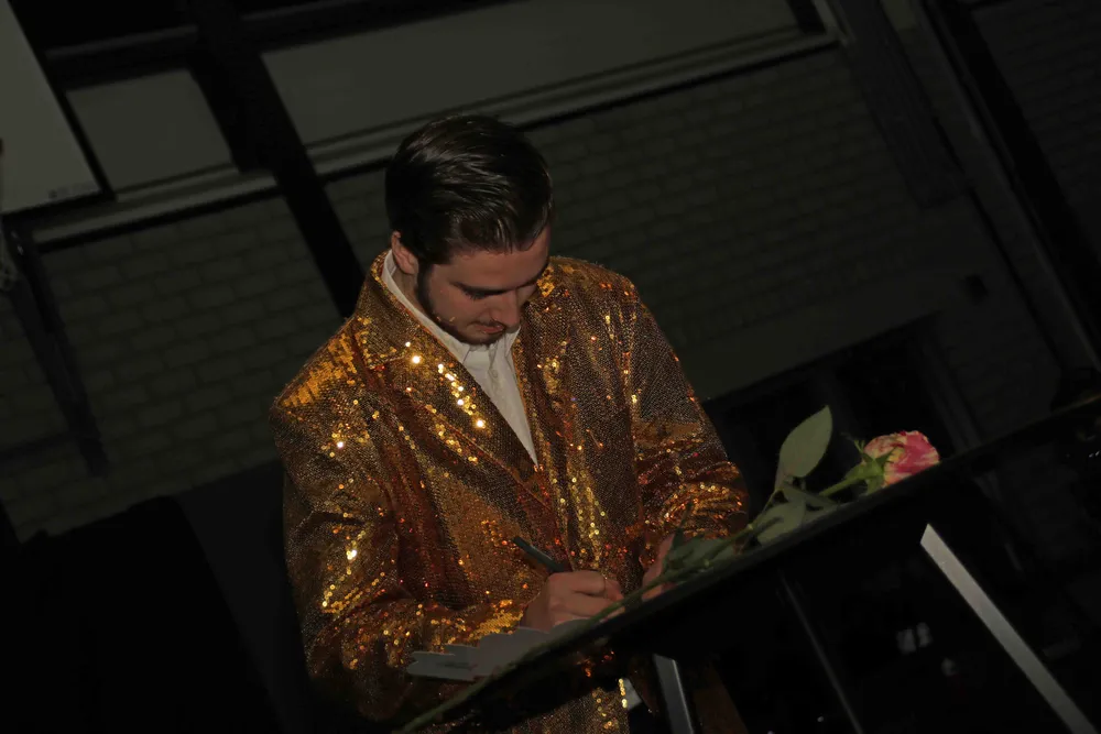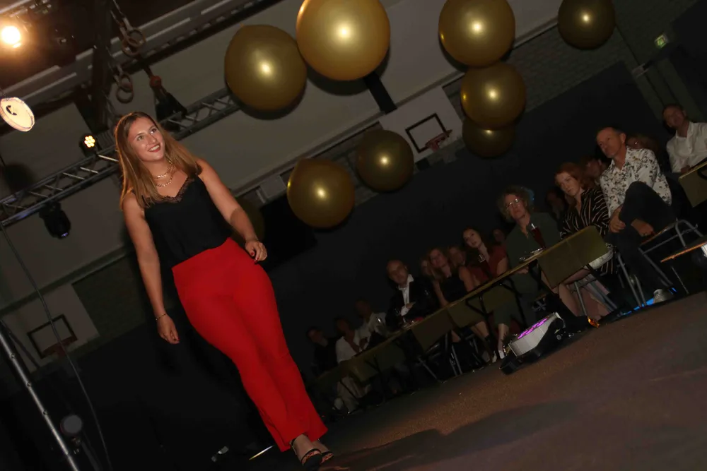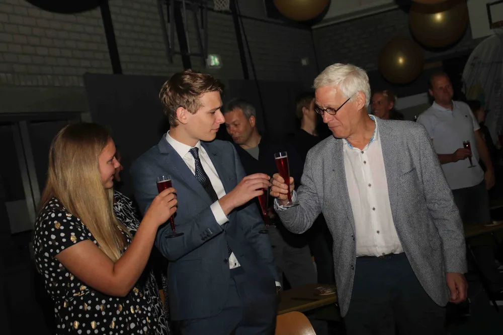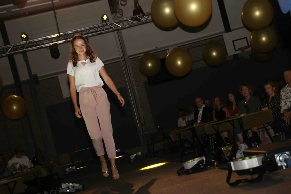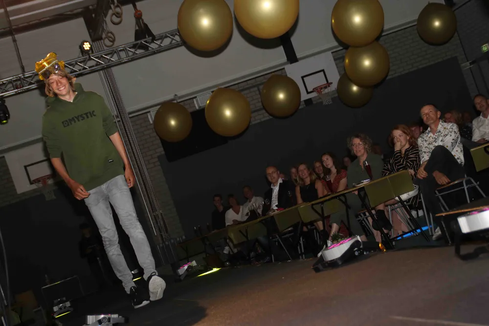 De geslaagde leerlingen met elk maximaal 2 gasten vanwege de coronamaatregelen, stond een uiterst in feestelijke sferen omgetoverde sportzaal te wachten. De organisatie had alles uit de kast gehaald om ondanks de beperkende maatregelen de leerlingen een onvergetelijk moment te bezorgen. Goud was de themakleur van de uitbundige versiering. Er werd geproost met champagne en gesmuld van bonbons die per stuk waren verpakt.