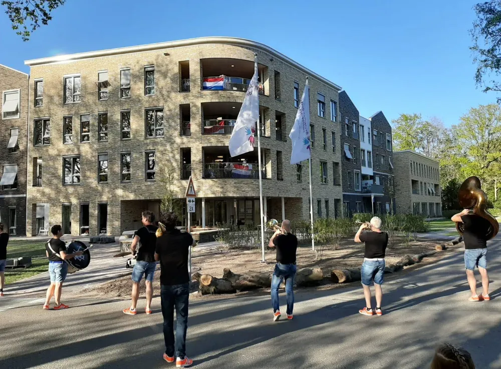 Op dinsdagavond 21 april werden de bewoners van de woonzorgcentra Het Kroondomein, De Arcade en De Amaniet verrast met een gratis optreden van de muziekband Bouncebrass uit Harderwijk.