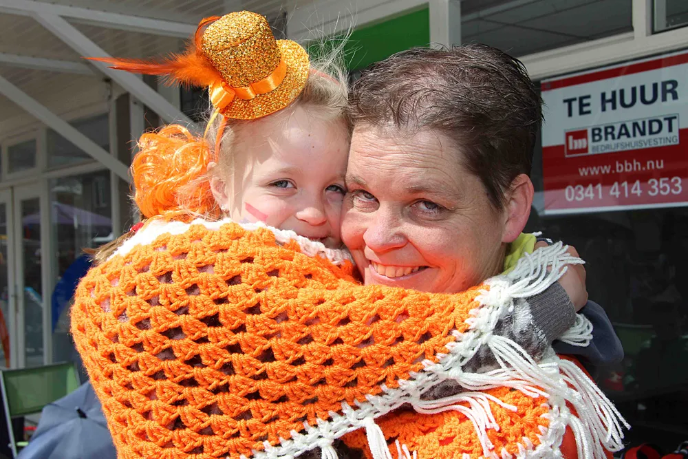 Koningsdag in Ermelo is op een regen-, sneeuw- en hagelbuitje na droog verlopen. Zelfs de zon scheen regelmatig uitbundig. Het was wel koud.