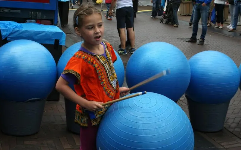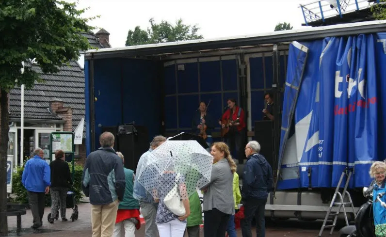 Door de regenachtige dag zochten bezoekers deze beschutting met graagte op. Op de pleinen was het tijdens de buien rustig, maar dat weerhield de entertainers er niet van om een feestje van ieder optreden te maken.