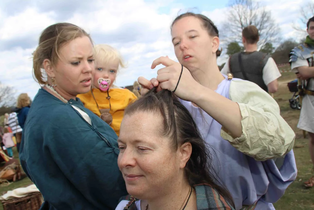 Net zo populair waren de verschillende workshops zoals het maken van je eigen sierspeld van klei. Halverwege de middag was de klei dan ook schoon op, wat voor een paar teleurgestelde kinderkoppies zorgde. Daarnaast vermaakte het publiek zich met allerlei pelletjes op zijn Romeins, verbaasde zich over de techniek van het frescoschilderen en proefde van het aanbod van de Romeinse markt. Helemaal compleet maakten de figuranten het, waaronder leden van Theatergroep Spiegel, die geheel naar de Romeinse stijl waren gekleed.