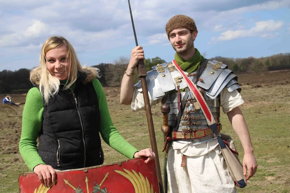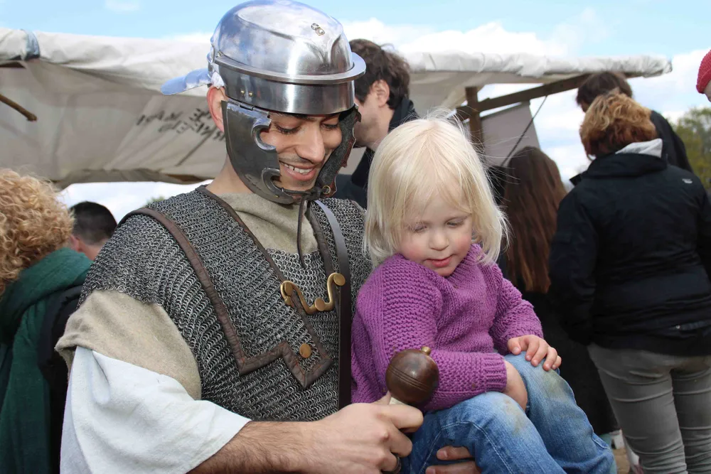 Gewapend met een houten zwaard en getooid met een echte Romeinse helm leerden de kinderen marcheren en formaties te maken. Soms keken ze met een schuin oog naar de echte legionairs, die als het signaal klonk, op kwamen draven om het publiek te vermaken met de zo typerende Romeinse vechttechnieken. Technieken waar de Romeinen tot op de dag van vandaag nog om worden bewonderd. En natuurlijk viel het kleine legertje van soldaten echt aan, om tot grote schrik van bezoekers nét voor het rood/witte lint tot stand te komen.