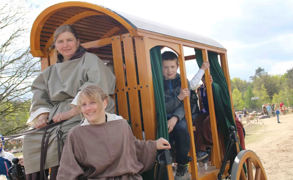 Erg populair was een rondje rijden met de Romeinse reiswagen over de Ermelosche heide, die voor deze gelegenheid werd voortgetrokken door de Belgische zwaargewichten van Jannetje Ruiter van Hoeve Nieuw Lopsum. De liefhebbers hadden totaal geen probleem met de lange wachtrij.