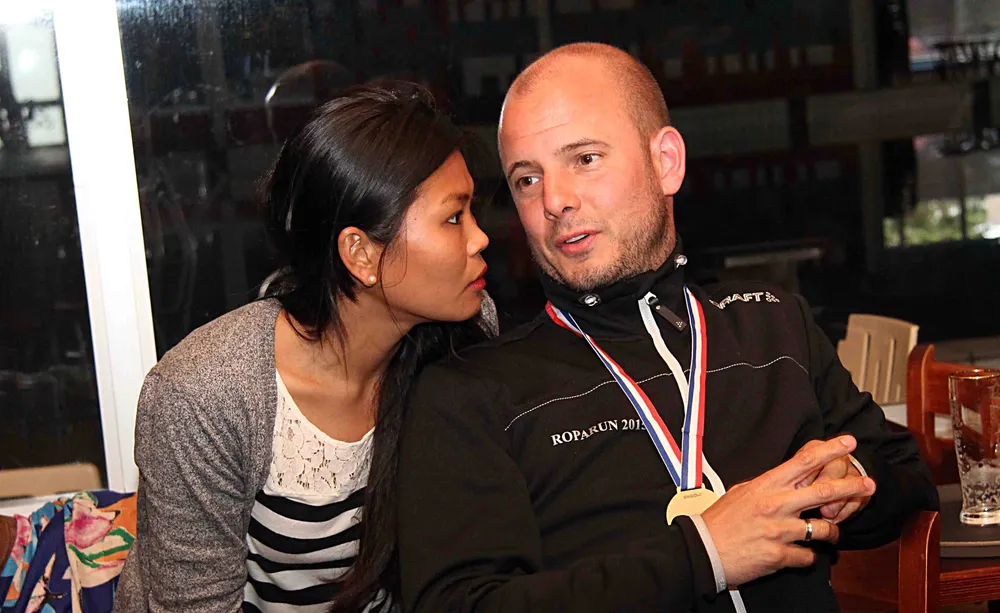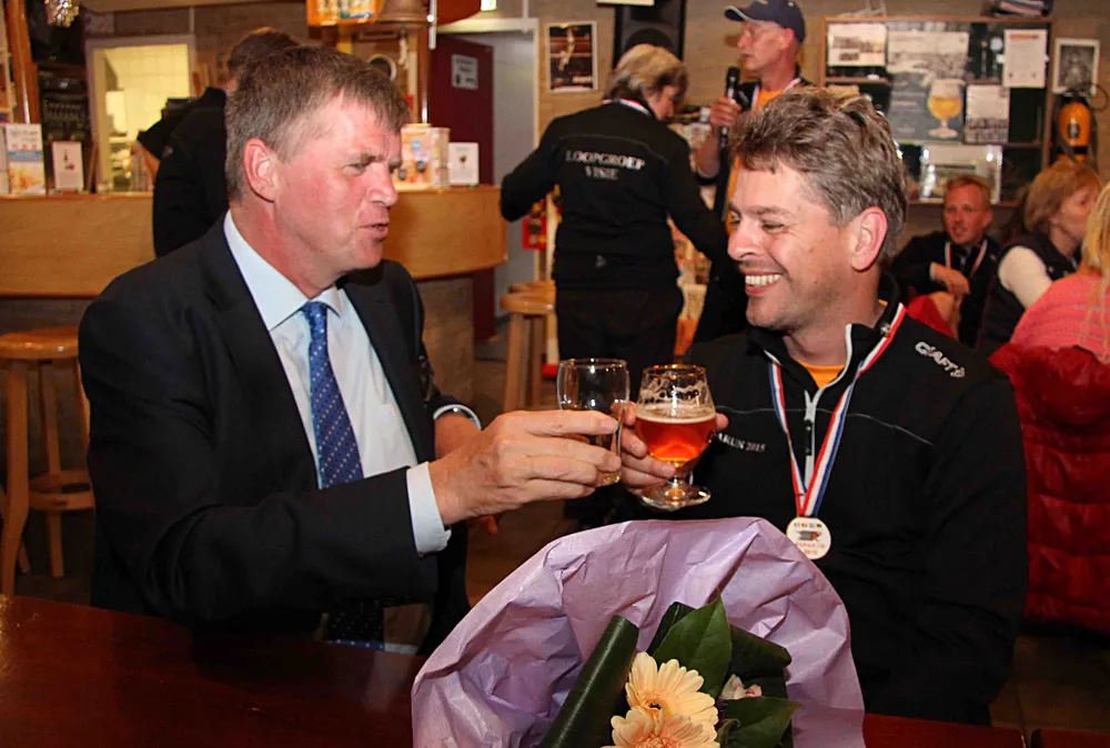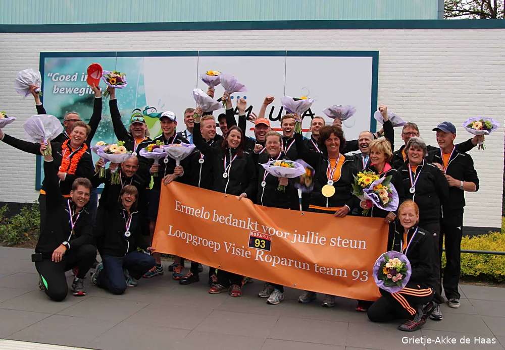 De euforie was groot vanavond, maandag 25 mei, in Sportcafé Calluna waar team 93 van Loopgroep Visie Ermelo werd onthaald door familie, vrienden én burgemeester André Baars. Het team van 21 mannen en vrouwen had met de deelname aan de Roparun 2015 voor de vierde keer een monsterprestatie neergezet.