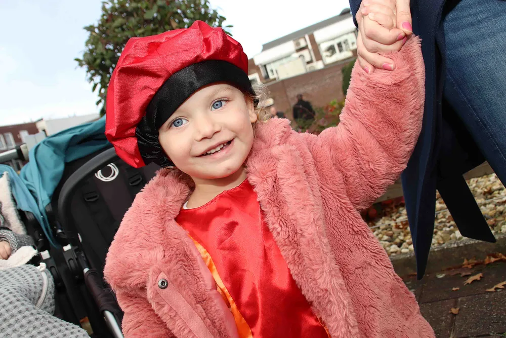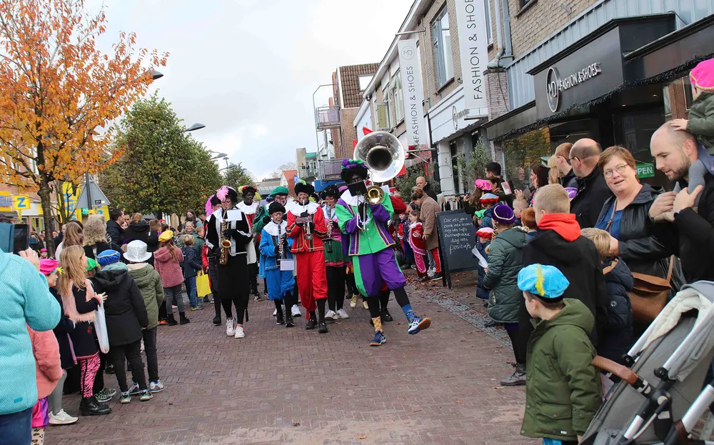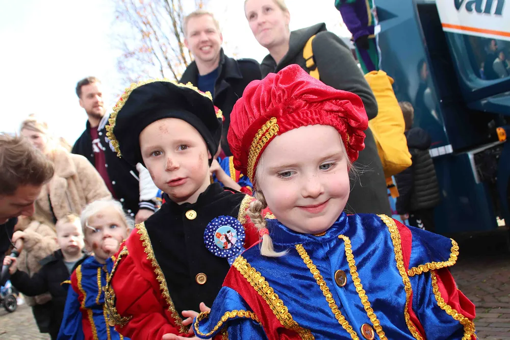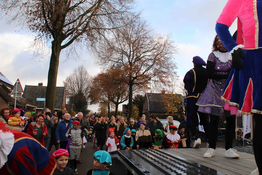 Maar ook langs de rest van de route zoals bij de start op het Kerkelijk Centrum, de Groeneweg en de Dokter Holtropstraat mochten Sinterklaas en zijn pieten op veel belangstelling rekenen. En veel uitgestoken handen en zakken natuurlijk voor de pepernoten.