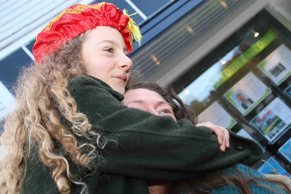 Maar het was het wachten waard zo bleek. Want Sinterklaas bleek al wandelend alle tijd van de wereld te hebben. Zo ging hij met veel van zijn fans op de foto, maakte een praatje en nam tekeningen in ontvangst.