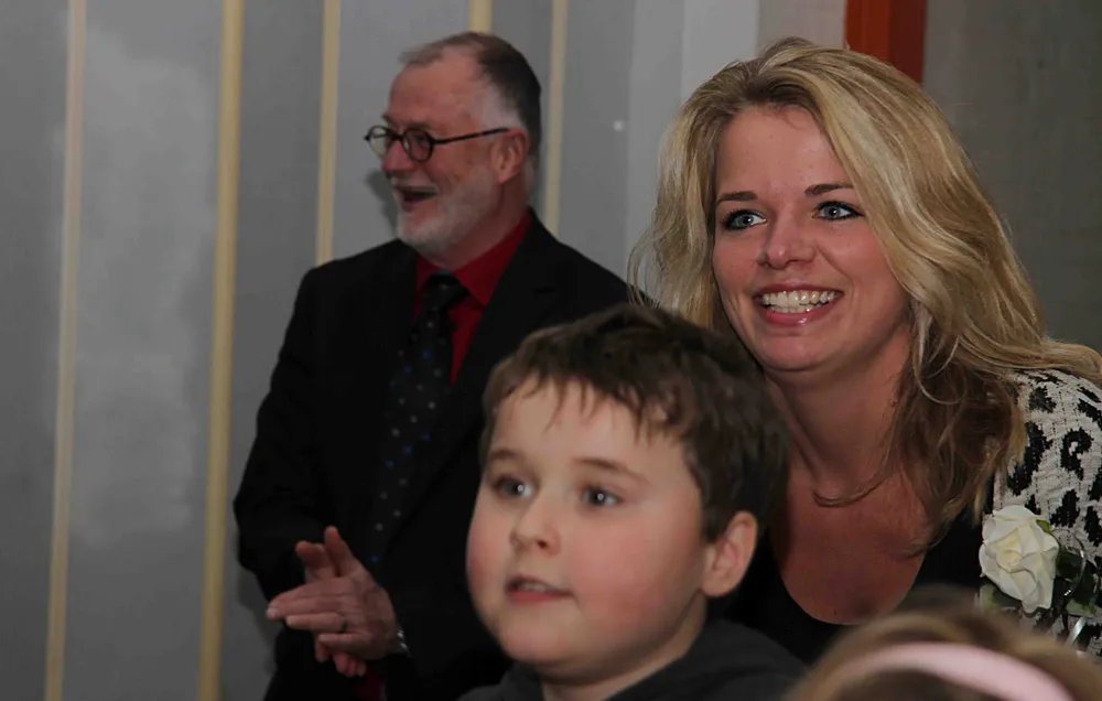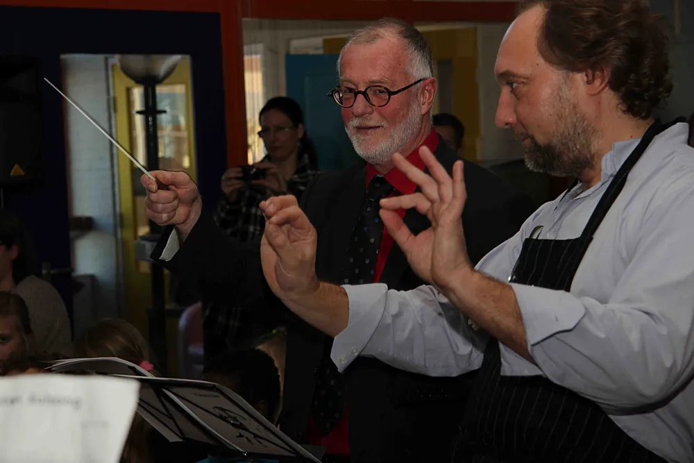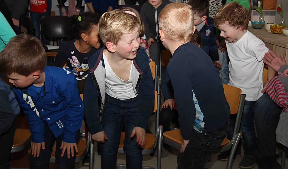 De leerlingen waren zo beduusdvan hun eigen kunnen dat ze vergaten op te staan om het oorverdovende applaus in ontvangst te nemen. De wethouder zei trots te zijn op de muzikale kinderen. Of de trots wederzijds is valt te betwijfelen. Als kandidaat van de Maestro van Crescendo editie 2014 mocht Klappe zijn dirigeerkunsten ook voor het Leerorkest vertonen. Zelden zal een orkest zo vals hebben geklonken als vanmiddag. De wethouder kon er zelf hartelijk om lachen. Klappe heeft dan ook nooit beweerd dat hij erg ritmisch of muzikaal is.