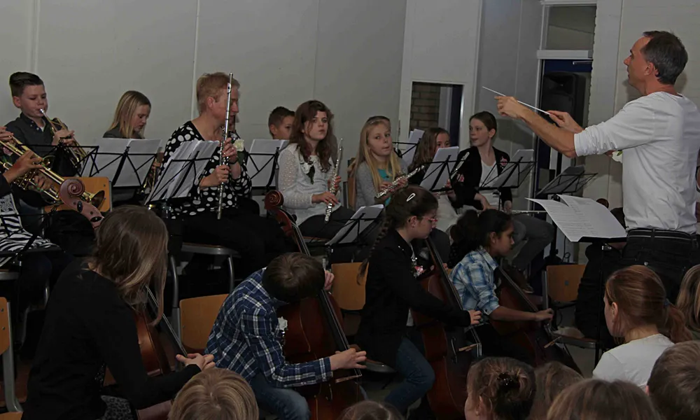 De leerlingen uit de groepen 6 tot en met 8hebben vanaf november 2015 op school maar liefst 10 weken lang, 1 keer per week, in groepjes leren muziek maken op chello's, trompetten tot dwarsfluiten, welk instrument ze maar wilden. Het Leerorkestis een initiatief vanCultuurkustdie door de gemeenten is ingeschakeld om muziek terug te brengen in het basisonderwijs. Laurens Klappe, wethouder van kunst, cultuur en onderwijs in de gemeente Ermelo liet zich de primeur natuurlijk niet ontglippen. "Met het faillissement van de Muziekschool wilden we als gemeente toch graag dat kinderen blijven kennismaken met muziekonderwijs. De motivatie om dit onder te brengen bij Cultuurkust is dat deze het muziekonderwijs naar de scholen brengt zodat de kinderen wellicht geïnspireerd raken, en zich gaan aansluiten bij een muziekvereniging." In Amsterdam Zuidoost introduceerde Cultuurkust namelijk met succes het Leerorkest.