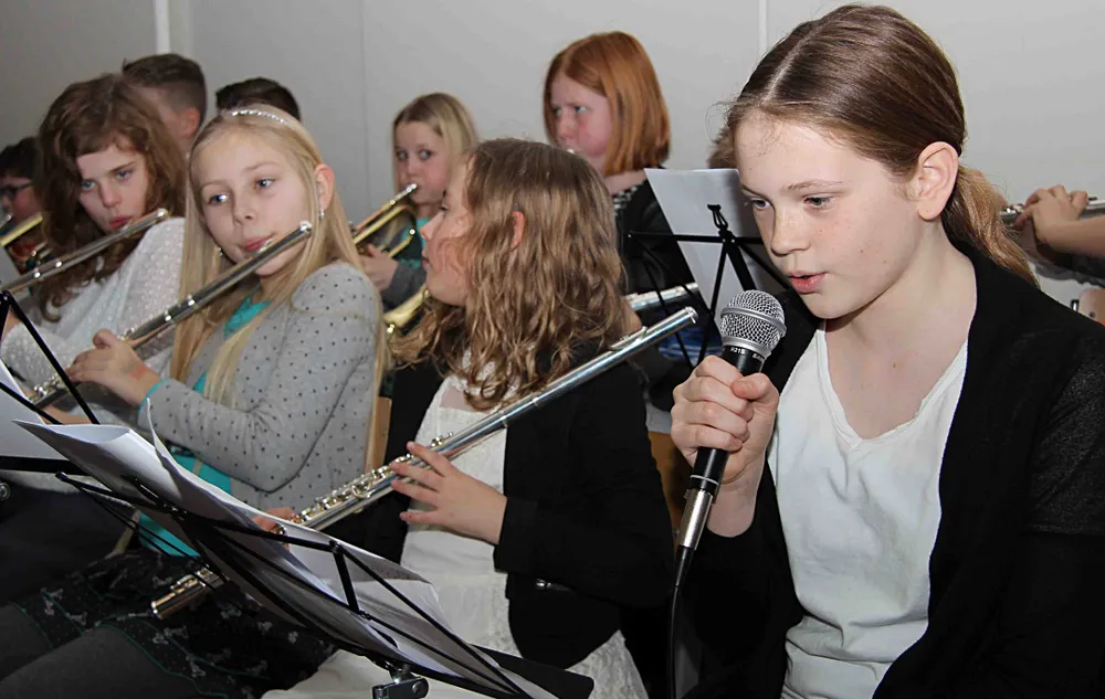Op het moment suprêmeging alles gelukkig van een leien dakje. Wat mede te danken was aan de inzet en het tomeloze enthousiasme van de muziekdocenten van Cultuurkust die de kinderen al die weken hebben begeleid. Ook het gretige publiek kreeg een rol toebedeeld. Met gebaren en geluiden mochten ze een onweersbui nabootsen om een muziekstuk op te luisteren. De momenten echter dat hun kinderen de toon aangaven tijdens het concert hielden ze zo trots als een pauw de mobiel op hen gericht voor een foto of filmopname.