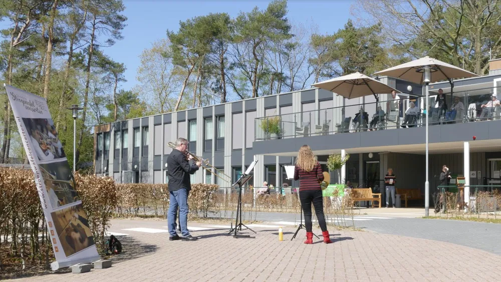 Woensdagmiddag 15 april organiseerde de Stichting Stroopwafelconcerten vier korte buitenconcerten voor de bewoners van (woon)zorginstellingen in Ermelo. De concerten werden op aanwijzingen van de instellingen uitgevoerd, zodat de veiligheid van de bewoners optimaal gewaarborgd was.