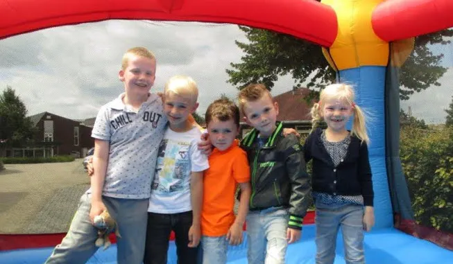 Edwin Zonneveld liet zien niet alleen goed te zijn als fysiotherapeut DVS 1, want hij bakte vanwege het lustrum zo’n 120 pannenkoeken, die gretig aftrek vonden. Kapper Capelli van de Suikerbakker trakteerde de kinderen op een ijsje en de Lidl Ermelo zorgde voor pakjes drinken, appels, bananen en muesli-repen.