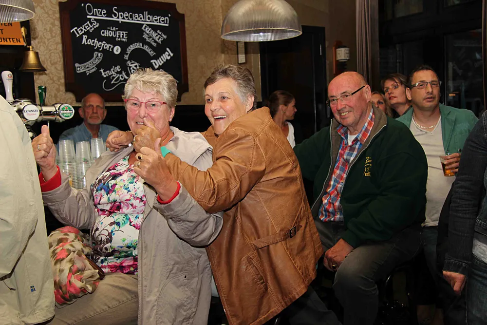 Bep de Leeuw (70) en Gerrie van der Ridder (69)voelden zich helemaal op hun gemak tussen het naar verhouding 'jonge spul' om hun heen. "We zijn net uit eten geweest, en dachten: 'we pakken even een borreltje bij de Molenaer'."