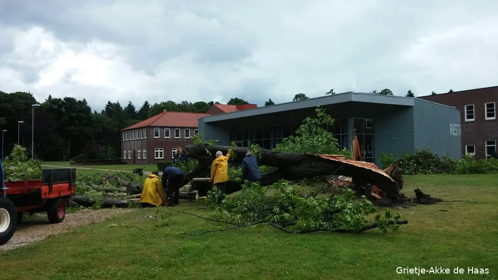 Decennialang was de monumentale eik dé trots van blindeninstituut (Bartimeus)Sonneheerdt en beeldbepalend op kiekjes voor promotiedoeleinden. Maar net als meer bomen in Ermelo overleefde ook deze eik de zomerstorm van afgelopen zaterdag, 25 juli, niet.