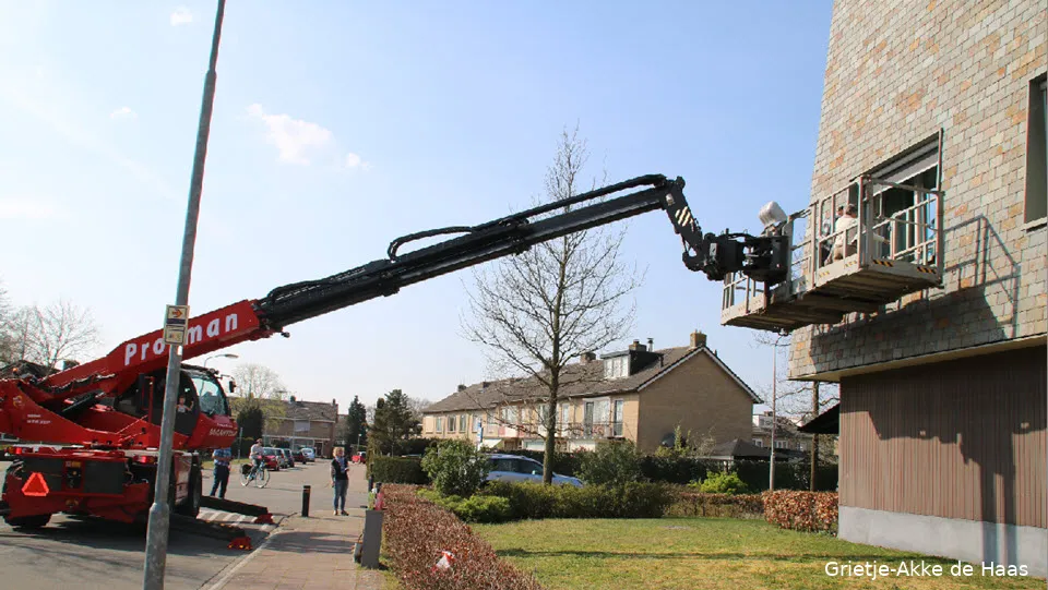 Van serenades tot gratis kroketten, de bewoners van de woonzorgcentra in Ermelo worden absoluut niet vergeten tijdens de coronacrisis. Ook vanmiddag, woensdag 8 april, vond een geweldige actie plaats bij woonzorgcentrum de Amaniet in wijk Oost. Twee uur lang herenigde Wilco Prosman, van Prosman Verreikerverhuur uit Nunspeet, families van 'buiten' met hun familie 'binnen'.