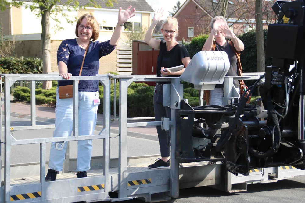 Maar ook zorgmedewerkers van de Zorggroep Noordwest-Veluwe kregen een lift naar boven om naar bewoners en collega's te zwaaien. Welzijnsmedewerker Tirza de Lange vertelde dat de bewoners die nu met het glas ertussen door hun families zijn bezocht, op gesloten afdelingen wonen. Ze mogen ook niet op het terras verblijven. Ook personeel dat doorgaans niet werkt op één van deze afdelingen werkt mag er gedurende de coronacrisis niet komen.