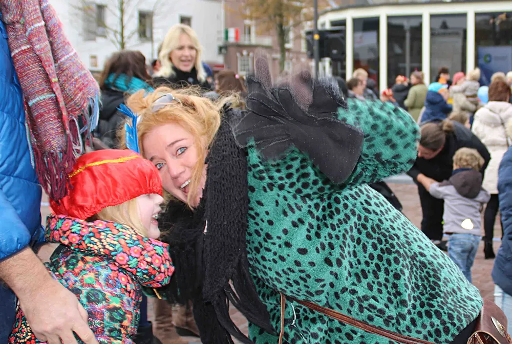 Terwijl de pieten de kinderen gul trakteerden op pepernoten en met ze op de foto gingen, nam Sinterklaas ondertussen alle tijd om met het publiek kennis te maken. Bovendien liet hij zich met zijn hoofdpiet met wie maar wilde vereeuwigen. Daarop stapte Sint op zijn paard en toog het vrolijke gezelschap richting het Raadhuisplein, waar burgemeester André Baars Sinterklaas stond op te wachten. Op het plein deed het pietengezelschap niet onder voor hun collega's. Met veel grappen en grollen en muziek wisten ze flink de stemming erin te brengen. Binnen de kortste keren zag het er zwart van het publiek dat al zingend en dansend vol verwachting op de komst van Sinterklaas wachtte.