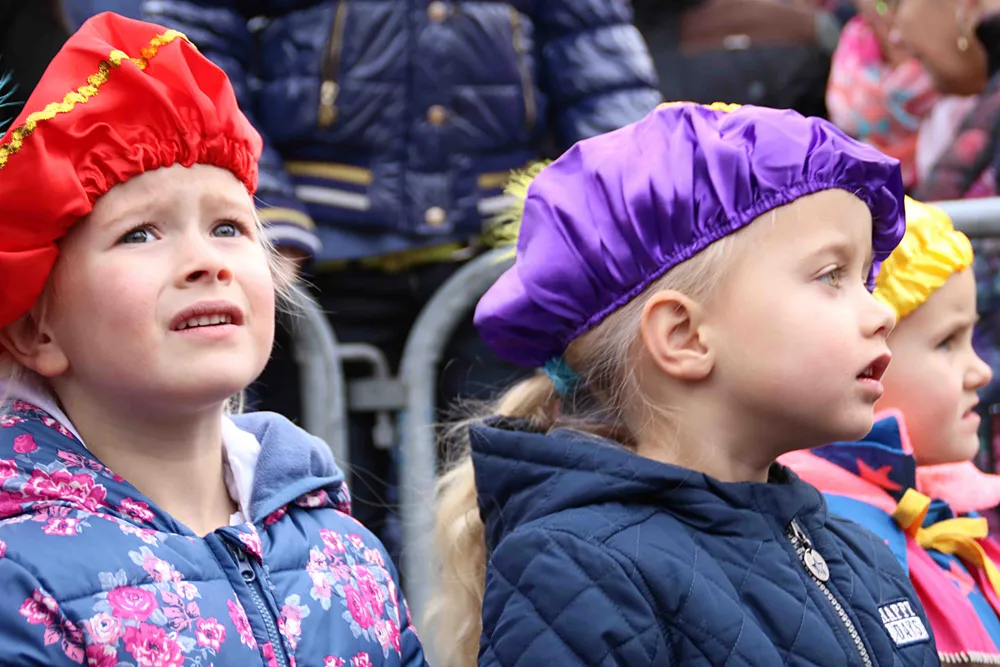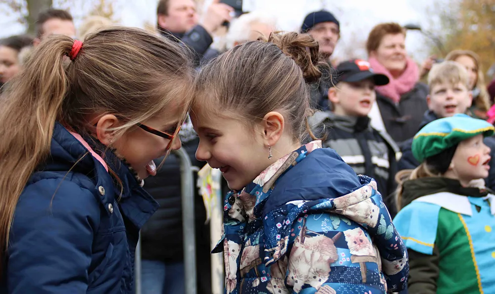 Het feest begon al op de parkeerplaats bij het Kerkelijk Centrum waar het Spaanse gezelschap zich opmaakte voor de intocht. "Ben jij nou een echte zwarte piet?", blikte Eva (9) bewonderend naar zwarte piet Angelique. Waarop deze breed lachte en bevestigde: "Jahaaa, ik ben een echte, mijn ouders en zusjes zijn hier ook vandaag." Het zwarte piet-schap is haar lust en haar leven. "Ik kijk hier echt het hele jaar naar uit. Want wat is er leuker dan het zien van al die blijde kinderen, ouders en opa's en oma's en het vullen van al die kinderschoentjes 's nachts."