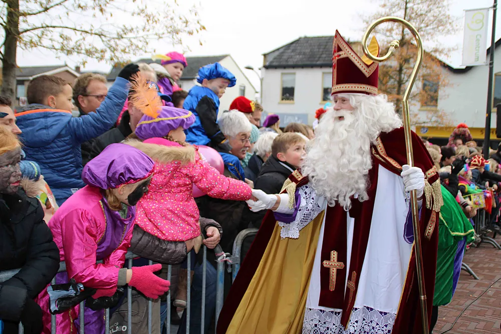 Zonder problemen arriveerde deze rond twee uur op het Raadhuisplein. Hij was reuze blij alle Ermelose kinderen die hem zo lief zijn weer te ontmoeten. Na een hartelijk welkom van de burgemeester, die bekende met een knuffel te slapen net als veel andere kinderen, klom Sint op zijn paard voor een rit door de Stationsstraat. Daar schudde hij de handen van nog veel meer kinderen die reikhalzend naar zijn komst uitzagen. Ook naar die van de zwarte pieten trouwens. Hun armen werden bijna een keer zo lang om de plastic tasjes tot rugzakken te laten vullen met pepernoten. Na een stop op De Enk reed Sinterklaas naar het Pakjeshuis waar hij tot zijn verjaardag logeert.