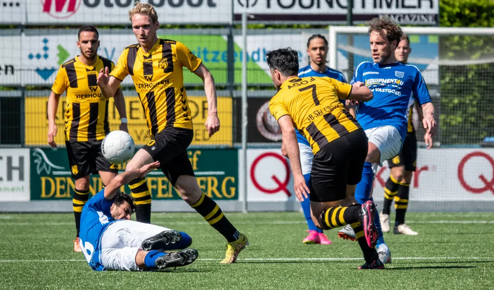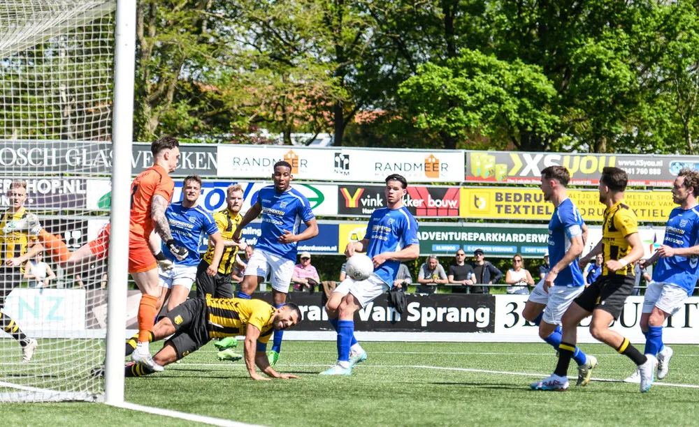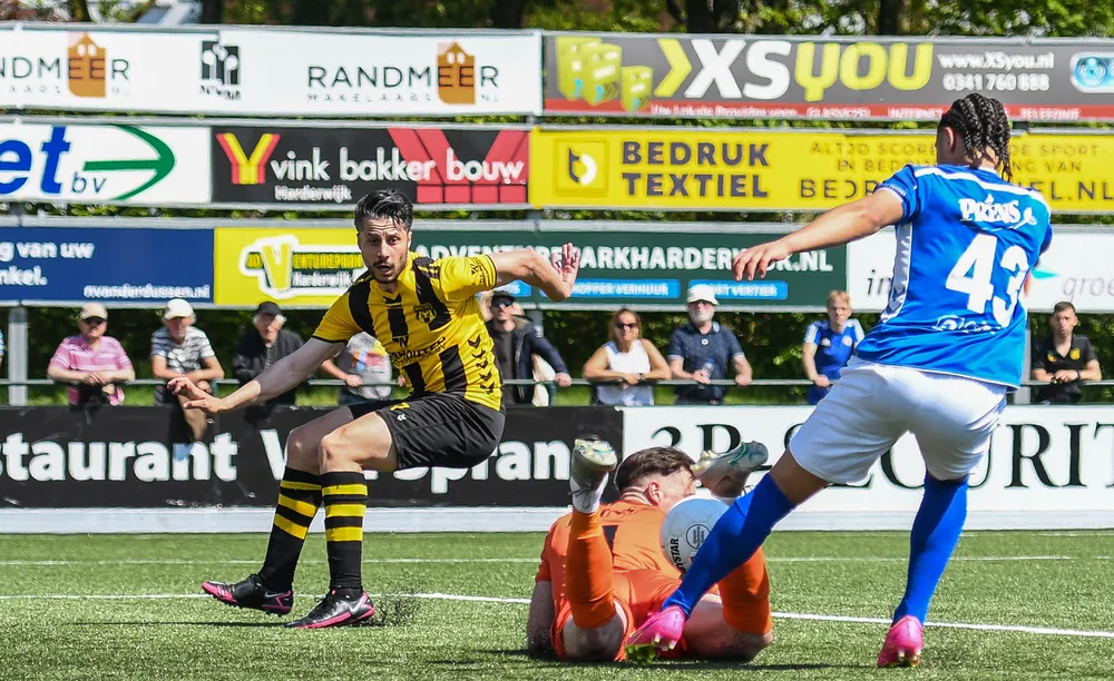De derde periodetitel is voor DVS’33 Ermelo uit beeld geraakt na de thuisnederlaag op zaterdag 13 mei tegen de nummer twee op de ranglijst, GVVV. De runner-up leidt nu zelf alleen de dans om deze prijs, terwijl het met nog twee speelronden voor de boeg al gegarandeerd is van de nacompetitie. De strijd om het kampioenschap duurt onverminderd voort, terwijl de geelzwarten een plaatsje zakten op de ranglijst. Stevan de Geijter begon met een wijziging in de basisopstelling. Ali Akla stond weer aan de aftrap in plaats van Joram Bakker.