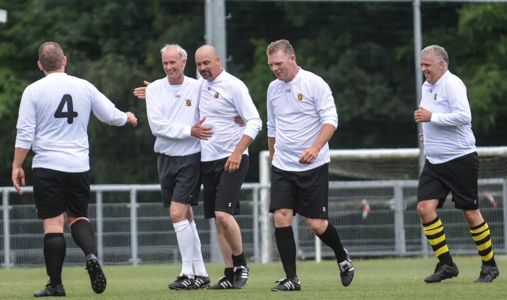 Hoewel er na dertig jaar de nodige kilootjes waren bijgekomen, werd er nog soepel en gemakkelijk gespeeld met een verzorgde opbouw, driehoekjes, crosspasses over 50 meter, gevaarlijke buitenspelers met messcherpe voorzetten en naarmate de tijd verstreek, kwam de voetbalmachine steeds meer op stoom.