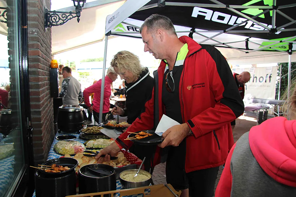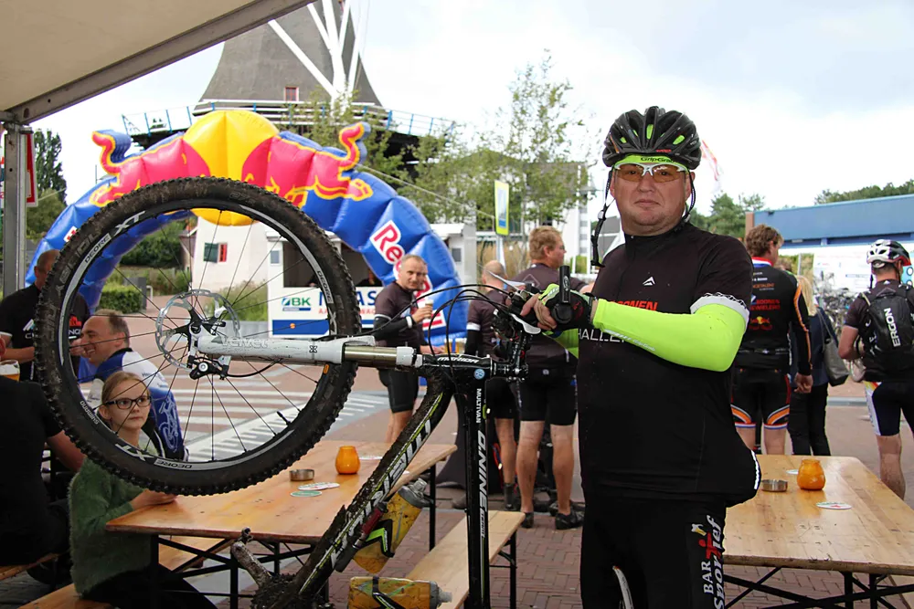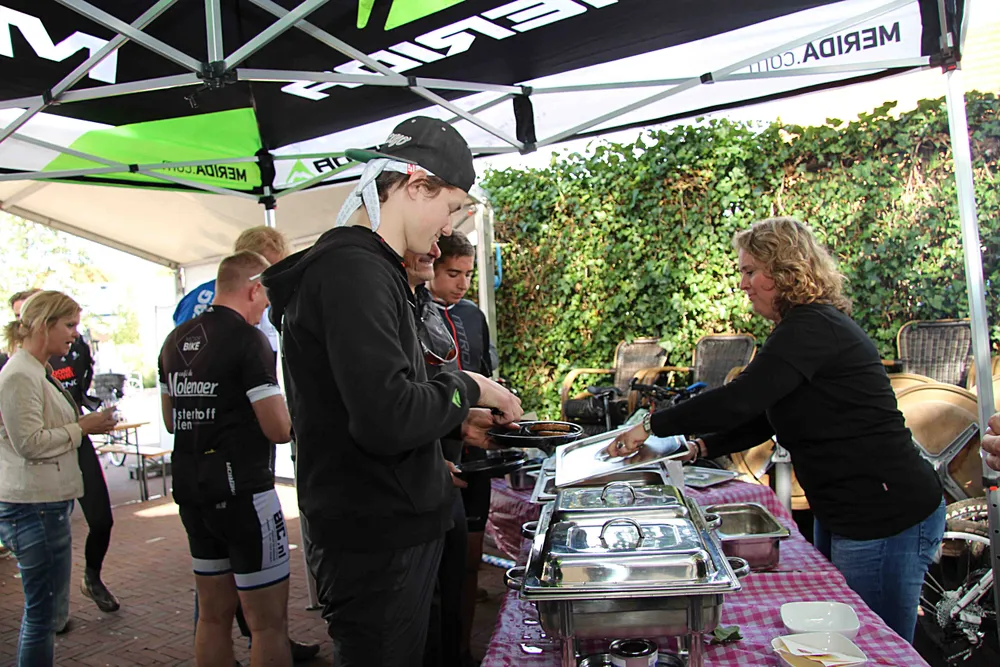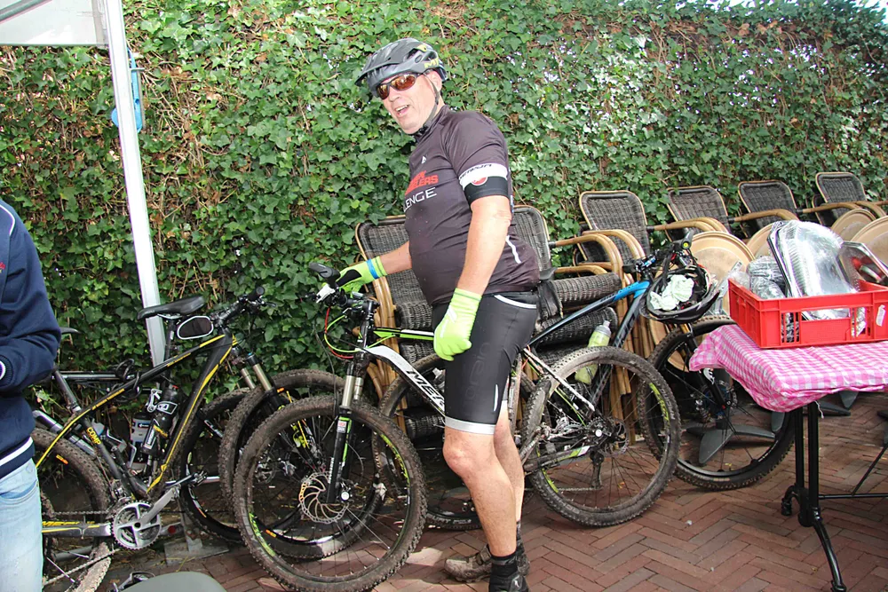 Ondertussen deelden de bikkels de ervaringen van de mountainbiketourtocht met elkaar.De een nog vies van de modder-spetters, de ander gedoucht en wel. Over een ding was iedereen het roerend eens; de 30- en 60 kilometerroute waren monsterachtig mooi en uitdagend om te fietsen.